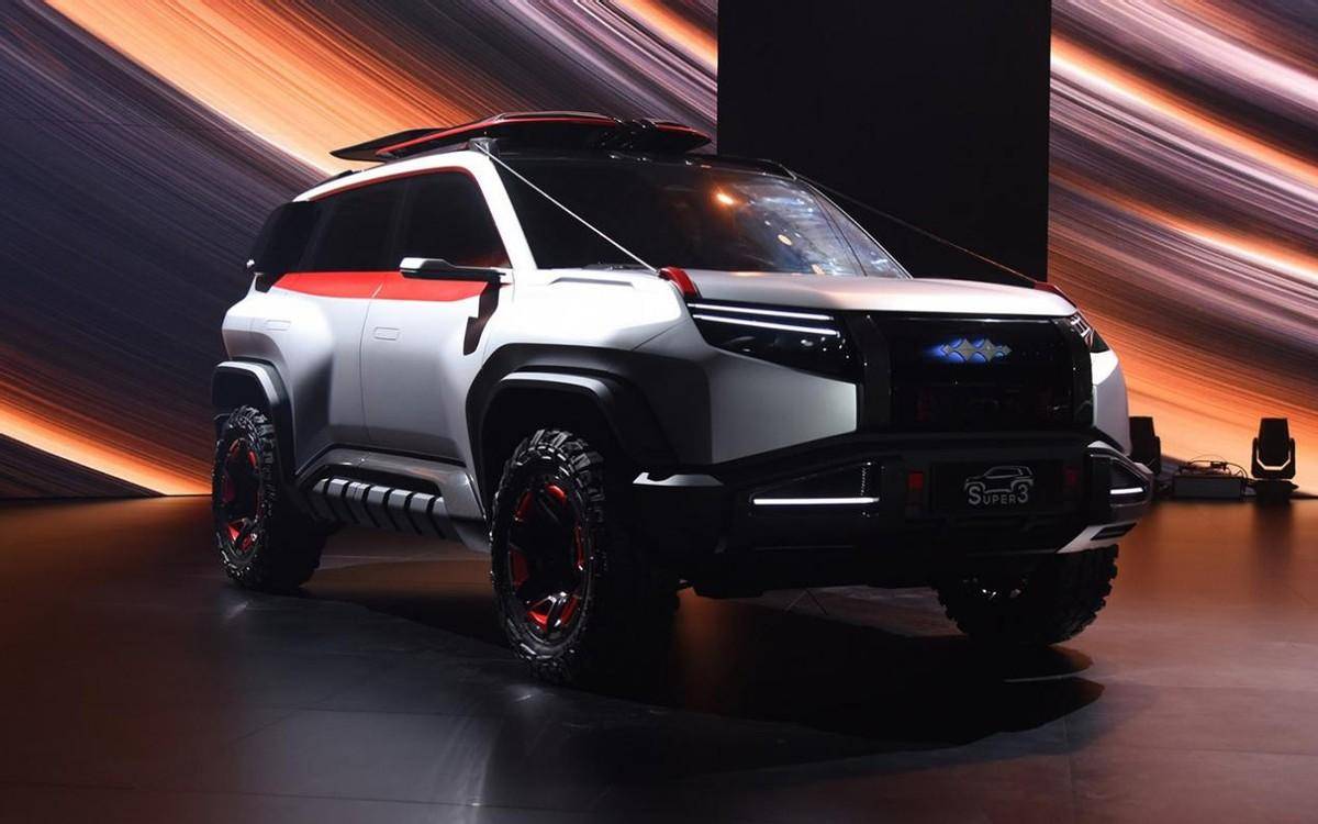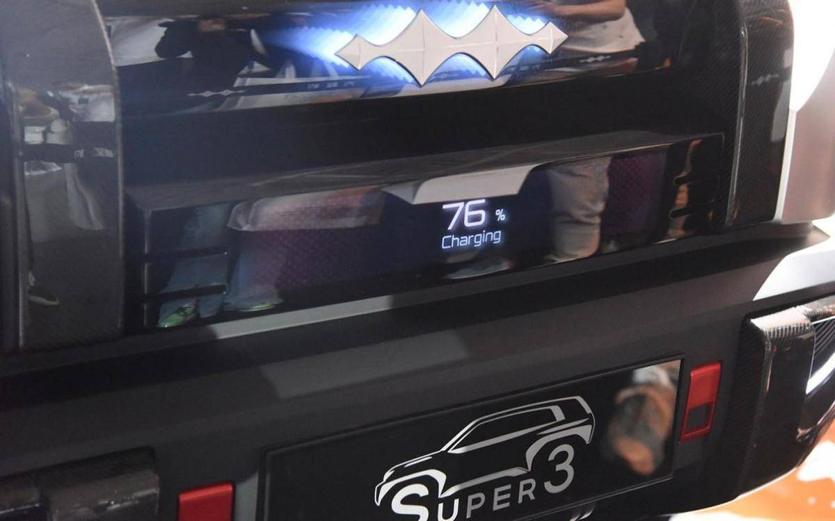 其次是發(fā)布的第二款車型SUPER 3。這款車型同樣基于比亞迪DMO超級混動越野平臺打造,目前所展出的則是一臺非量產(chǎn)版的實車。從定位來看,新車屬于一款中型SUV,同時官方對它的定義是潮玩專家,并且會采用純電驅(qū)動的動力形式。
