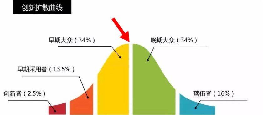 這個“死亡之谷”就橫亙在創(chuàng)新擴散的第二、第三階段之間,大約對應(yīng)16%的的消費人群。