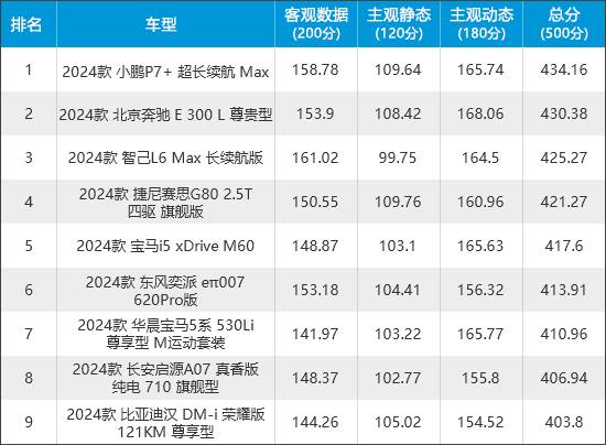 此次選取的9款車型中,有5款來(lái)自于自主品牌。從客觀數(shù)據(jù)、主觀靜態(tài)和主觀動(dòng)態(tài)三個(gè)維度來(lái)看,9款車型表現(xiàn)各不相同。其中,小鵬P7+的各項(xiàng)數(shù)據(jù)均表現(xiàn)優(yōu)異,最終榮登冠軍寶座,其總分在車質(zhì)網(wǎng)測(cè)試過(guò)的所有同級(jí)別車型中處于上游水平。此外,傳統(tǒng)豪華品牌車型北京奔馳E300L在主觀感受層面表現(xiàn)突出,尤其是主觀動(dòng)態(tài)數(shù)據(jù)層面,得分是9款車型中最高的,總分也僅次于小鵬P7+。相比之下,當(dāng)下熱銷的比亞迪漢整體表現(xiàn)不佳,特別是在客觀數(shù)據(jù)和主觀動(dòng)態(tài)層面失分較多,從而也導(dǎo)致其總分在9款車型中最低。