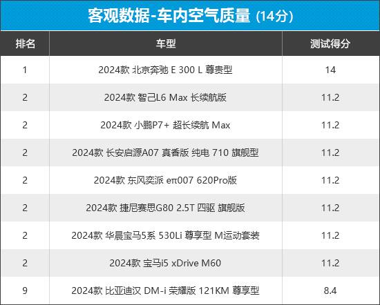 通過(guò)榜單排名可以看出,9款車型中僅有北京奔馳E300L的車內(nèi)未檢測(cè)出甲醛成分,以滿分成績(jī)過(guò)關(guān)。相比之下,比亞迪漢車內(nèi)甲醛含量雖然符合評(píng)價(jià)標(biāo)準(zhǔn),但實(shí)測(cè)數(shù)值明顯高于其他車型,導(dǎo)致得分排名墊底。