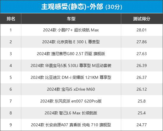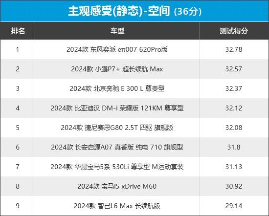 從榜單車型的得分來(lái)看,北京奔馳E300L以35.1分的成績(jī)登頂,是9款車型中唯一超過(guò)35分的車型,成功捍衛(wèi)了其豪華品牌的身份。相比之下,東風(fēng)奕派eπ007得分僅為29.8分,主要在行駛穩(wěn)定性方面失分較多。