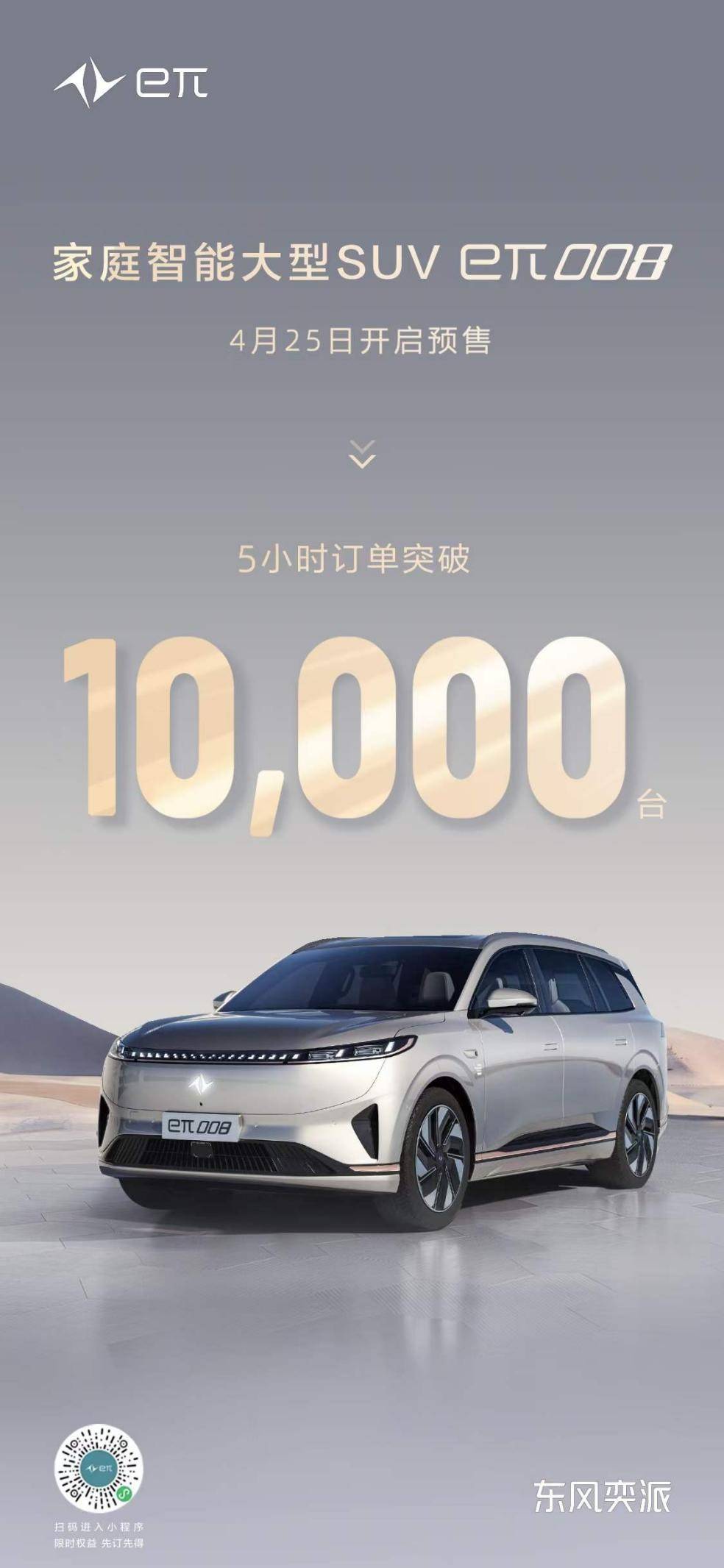 新車定位于家庭智能大型SUV,以硬核實(shí)力強(qiáng)勢進(jìn)軍大六座SUV市場。它擁有5002mm車長+3025mm超大軸距的極致空間,提供純電&增程兩種動(dòng)力選擇,在美感、智能、舒適、安全上,為家庭用戶打造一款真正的高價(jià)值精品新能源車,為用戶提供更理想的生活之選。eπ008預(yù)售政策同步揭曉,在4月25日至5月31日期間,99元下訂即享價(jià)值超10000元訂購福利。新車人氣火爆,開啟預(yù)售5個(gè)小時(shí)內(nèi)訂單過萬。