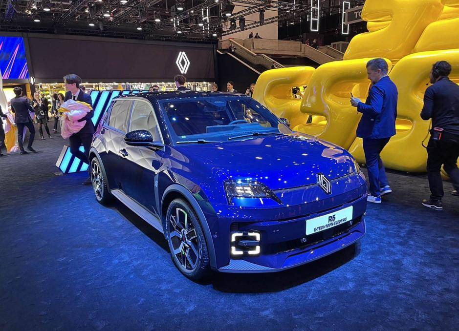 外觀方面,新車外觀設計很有意思,有一種復古的感覺,特別耐看。配色上有大黃色、亮綠色,觀感上特別抓人眼球。前臉來看,新車格柵為封閉設計,雷諾的車標位于中間,兩側有線條鏈接,形成一體式設計。燈組采用圓角矩形結構,內部是LED光源,四個角都可以點亮。發動機引擎蓋上有一塊顯示屏,充電時會顯示相關數據,滿電時顯示5,對應新車的名字。
