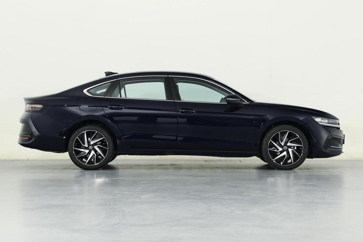 從側(cè)后方向來看,邁騰的腰線還是貫穿連接了前后車門把手,線條比較尖銳而下方出現(xiàn)了淺溝壑,在前端消失在了前翼子板處,而在后端則進(jìn)入到了尾燈的邊角位置。同時(shí),車尾除了有一個(gè)比較軟潤的鴨尾外,中央的熏黑尾燈與下方帶黑色裝飾配件的反光帶都實(shí)現(xiàn)了左右貫穿,前者采用了大眾Surface LED面光源技術(shù)。同時(shí),后保險(xiǎn)杠不再提供裸露的排氣管,而是采用了下置式的隱藏處理,既能夠在尾箱蓋上形成比較豐富的層次,又能通過這樣的簡化處置讓車輛顯得干練一些。
