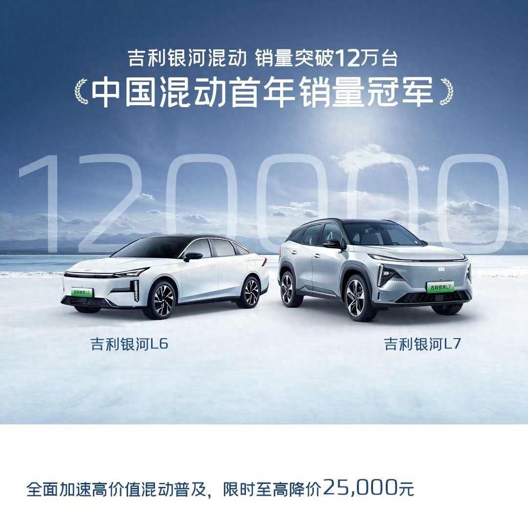 吉利銀河在首款車型銀河L7上市交付一周年之際,公布了最新銷量數據。轱轆哥獲悉,吉利銀河混動首年銷量突破12萬輛,是中國混動首年銷量冠軍。