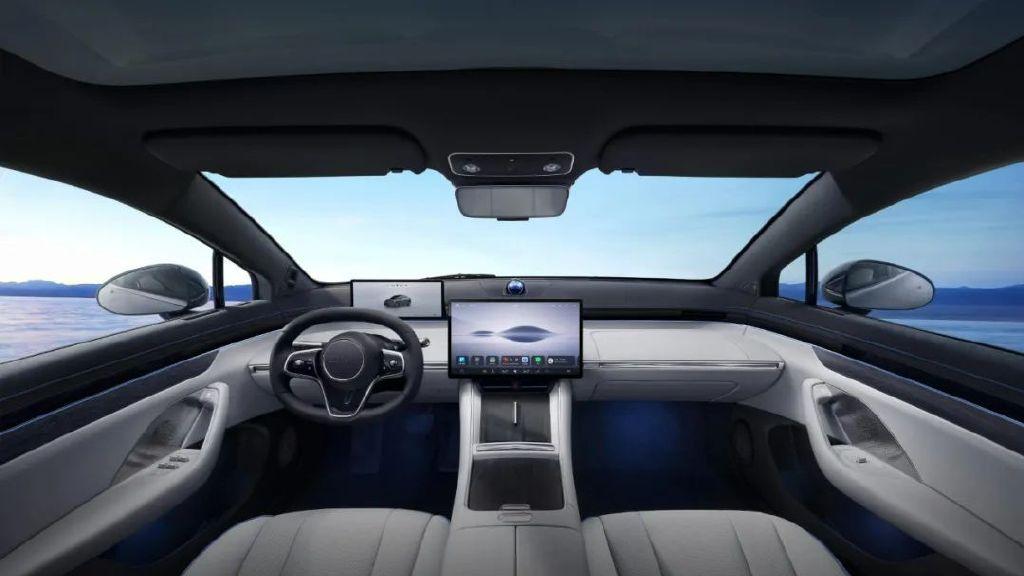 智界S7的座艙采用環(huán)抱式游艇設(shè)計,并沒有采用時下流行的大聯(lián)屏設(shè)計,12.3 英寸液晶儀表+15.6 英寸懸浮式中控屏屹立在中控臺上方,中控臺純平設(shè)計,在一體化穹頂設(shè)計的加持下,使得駕駛員的視野會更加開闊,不過液晶儀表與方向盤的距離比傳統(tǒng)設(shè)計要遠一些,需要一定的適應(yīng)期。副駕駛位前方設(shè)計有純平多功能儀表臺,擁有超大的儲物空間,可收納日常用品及化妝品,同時副駕駛位還配有女王副駕,支持電動調(diào)節(jié)、腿托、按摩等功能,舒適度也非常不錯。車機方面,智界S7搭載華為HarmonyOS 4 車機系統(tǒng),不僅支持3D車控,在盤古大模型的助力下,語音交互也更加自然,人機溝通更加人性化。華為平板還可通過 HUAWEI MagLink吸附在前排座椅后背,實現(xiàn)多屏聯(lián)動。不過就拓展可玩性,還是智己L6更高一些。