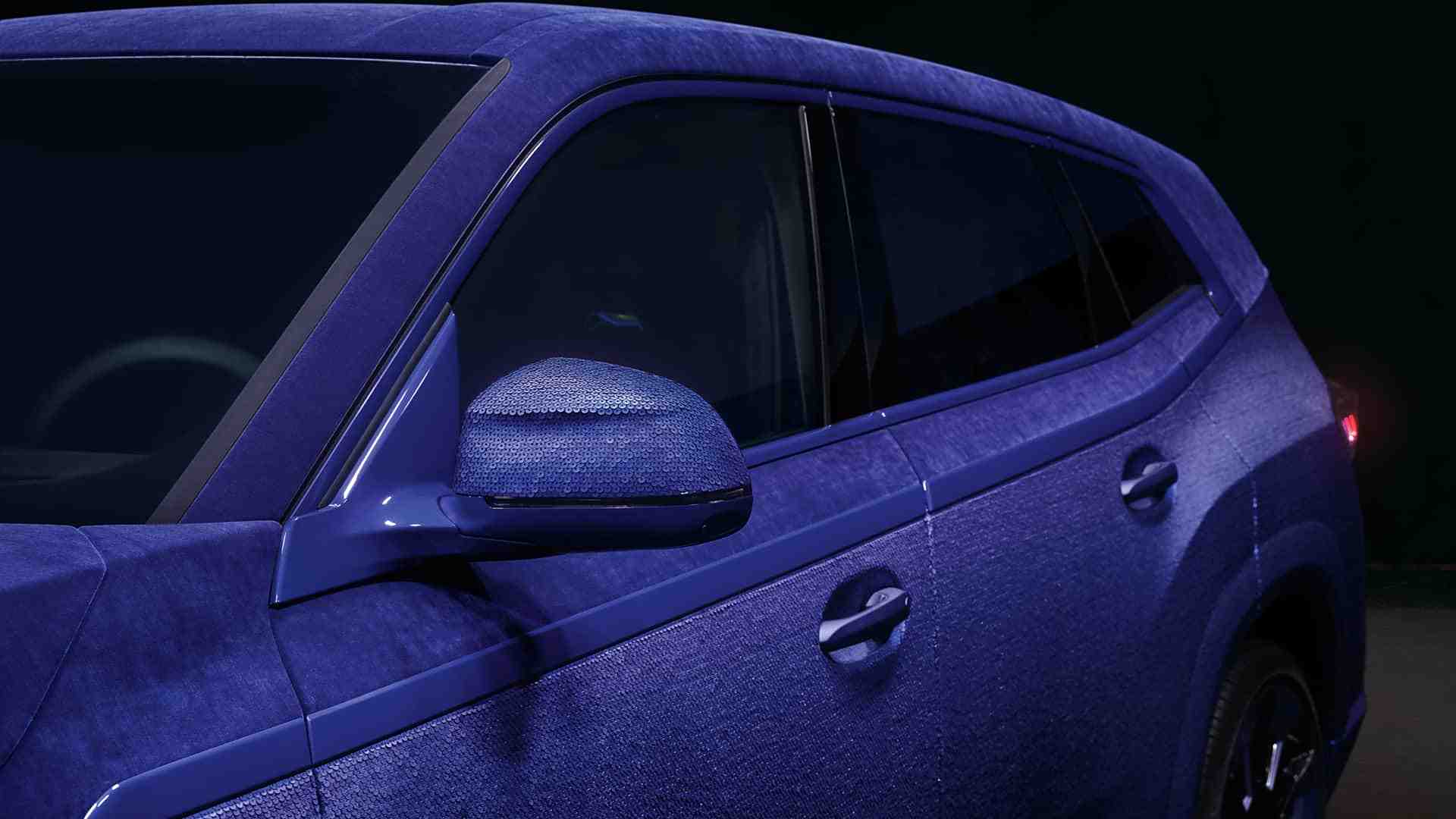 新車的外觀設計和寶馬XM幾乎一樣,不同的是,它采用了時尚品牌Jakob Schlaepfer提供的紫色天鵝絨包覆,在中網、前包圍兩側、外后視鏡殼等部位還通過紫色亮片點綴,提升了外觀的辨識度。