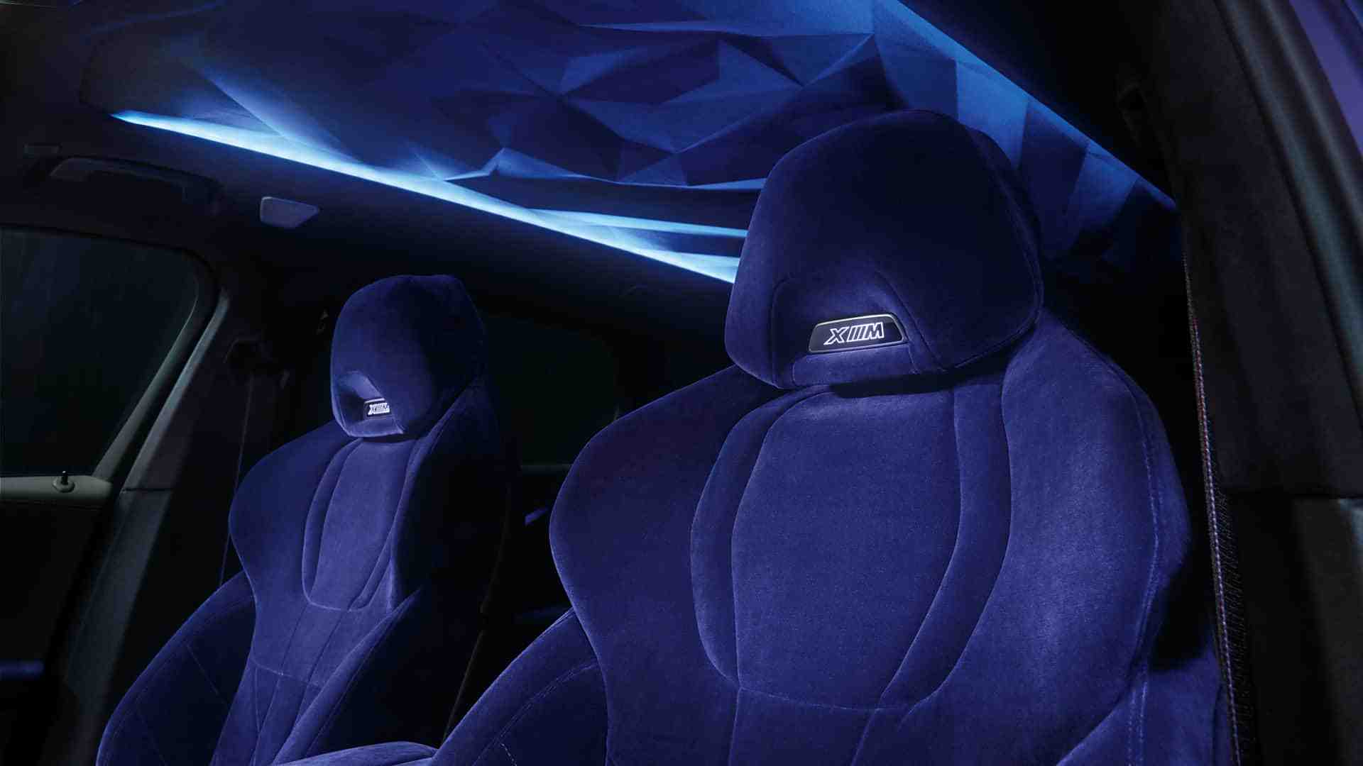 內飾方面,新車的布局和普通版寶馬XM沒有什么區別,不同的是用料和顏色,座椅、中控臺、前排地臺和門板內也是通過紫色天鵝絨包覆,座椅的縫線采用了全新的紋路,就連全景天窗上都有大量紫色元素,內飾的儀式感也很強烈。