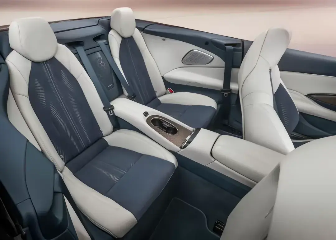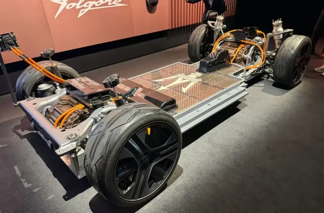 但最讓我感興趣的還是它那幾乎與燃油車持平的坐姿。通常電動(dòng)車因?yàn)殡姵亟M的布局,乘客的坐姿會(huì)比較高,但在GranCabrio Folgore上卻不是這樣。原來(lái),工程師們巧妙地將電池組設(shè)計(jì)成T形,布置在后排座椅的下方,既不影響車內(nèi)空間,又保證了車輛的穩(wěn)定性。這種設(shè)計(jì)不僅使得車身重心降低,還為車輛提供了額外的扭轉(zhuǎn)剛性。