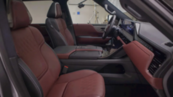 車內采用暗紅色+黑色雙拼色設計,配備雙14.3英寸顯示屏組成的懸浮式雙聯屏設計,扶手箱前端配備額外的觸控屏幕,取代了各種實體按鍵,后方的儲物格蓋板、手機無線充電面板都用皮革包覆,加上造型別致的雙幅式平底多功能方向盤、懷擋換擋、氛圍燈帶等配置,還有隨處可見的軟包皮革,營造出不錯的豪華感。