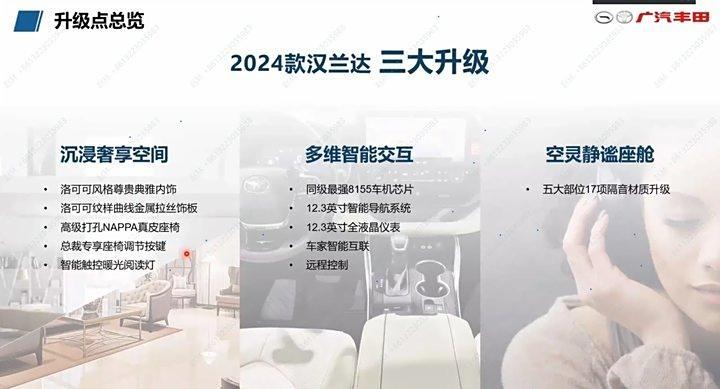 近日,廣汽豐田官方宣布,新款豐田漢蘭達(dá)將于5月31日上市,此次改款的重點是車內(nèi)配置,將對智能化配置、內(nèi)飾用料和靜音等方面進(jìn)行升級,這也是根據(jù)老車主提出的建議做出修改,下面一起來看新車具體做了哪些改變。