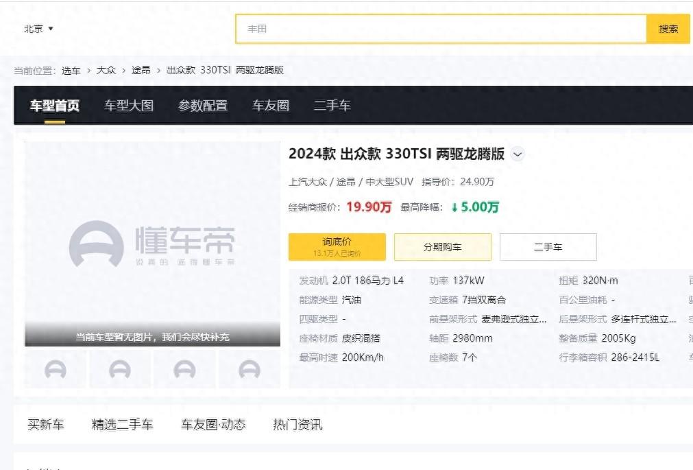 隨著家庭人口數量的不斷增多,普通的5座家用車出行代步時常局限,因而大7座設計款式的熱度日漸增高,但更大規格的車型設計往往意味著價格更貴,普通家庭屬實難以承受。上汽大眾旗下的途昂系列熱度不低,24.9萬-40.5萬的指導價也彰顯出了其高端定位,但終端卻給予了較大的價格讓步,入門款的裸車價甚至跌入20萬級。以北京為例,該款型的最高降幅達到了5萬元,經銷商報價19.90萬元。那么,大眾途昂在滿足家用需求又有怎樣的實力支持呢,下面來深入了解吧。