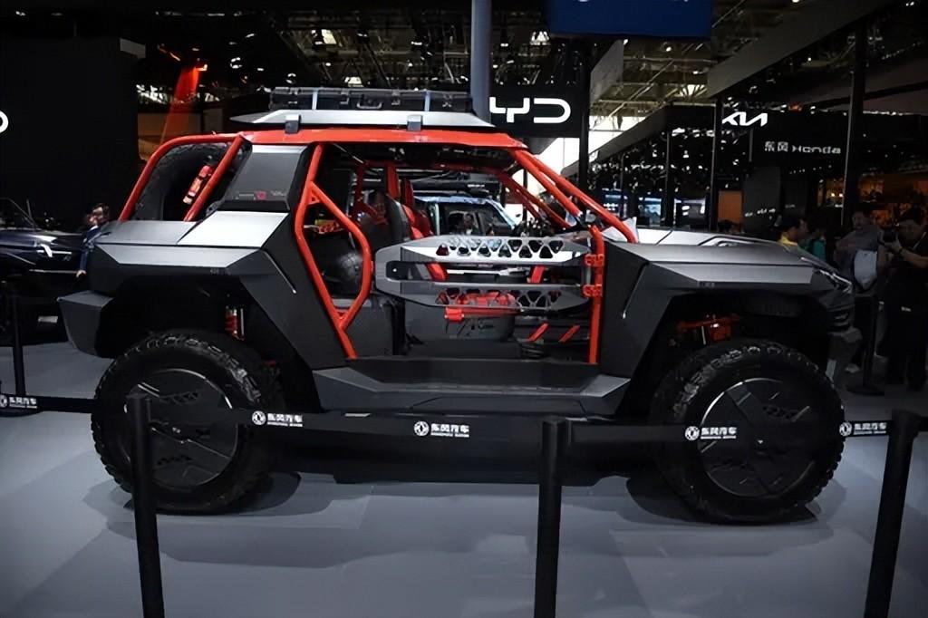 車身側面保持了堅實的越野車線條,去除了傳統(tǒng)車門,改為更適合極限挑戰(zhàn)的簡化護欄。使用37英寸寬胎和封閉式輪轂,這不僅降低了空氣阻力,還通過深花紋的輪胎提供了卓越的牽引力。車身廣泛使用的碳纖維材料,不僅減輕了重量,也增強了車輛的敏捷性。