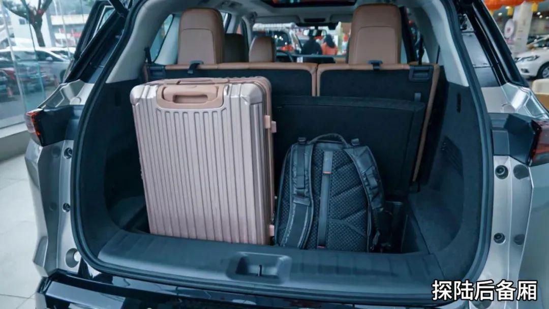 后備廂空間方面,在同樣立起第三排座椅后,漢蘭達與探陸的后備廂空間寬度不相上下,但探陸車身長度更長,所以其進深也稍長一點。