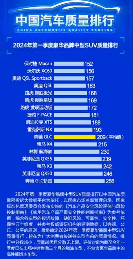 日前,中國(guó)汽車(chē)質(zhì)量網(wǎng)發(fā)布《2024年第一季度豪華品牌中型SUV質(zhì)量排名》。此次,共有17款車(chē)型參與評(píng)選,測(cè)評(píng)平均分達(dá)到209分,分?jǐn)?shù)越小代表車(chē)型的質(zhì)量越好。