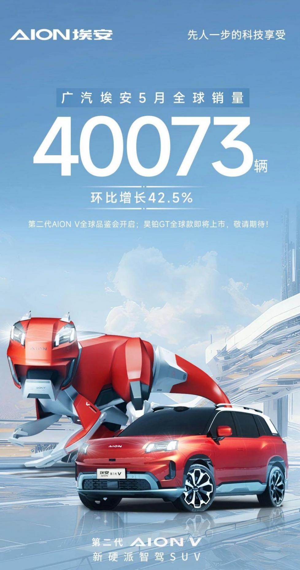來自南方大廠廣汽集團孵化出的全系純電動品牌,人稱網約車之王,5月份銷量為40073輛,環比增長42.5%。