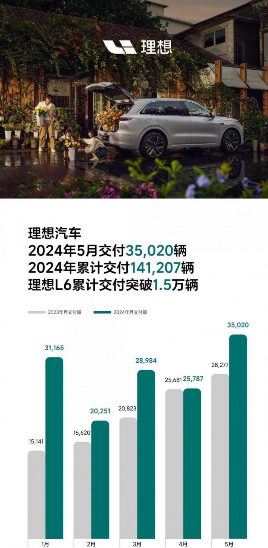 憑借“移動的家,安全的家”概念火出圈,依靠套娃式的L9、8、7、6 SUV以及公路高鐵Mega MPV,理想在5月份依舊取得了35020輛的好成績,坐擁“蔚小理”造車新勢力三巨頭中的頭把交椅。