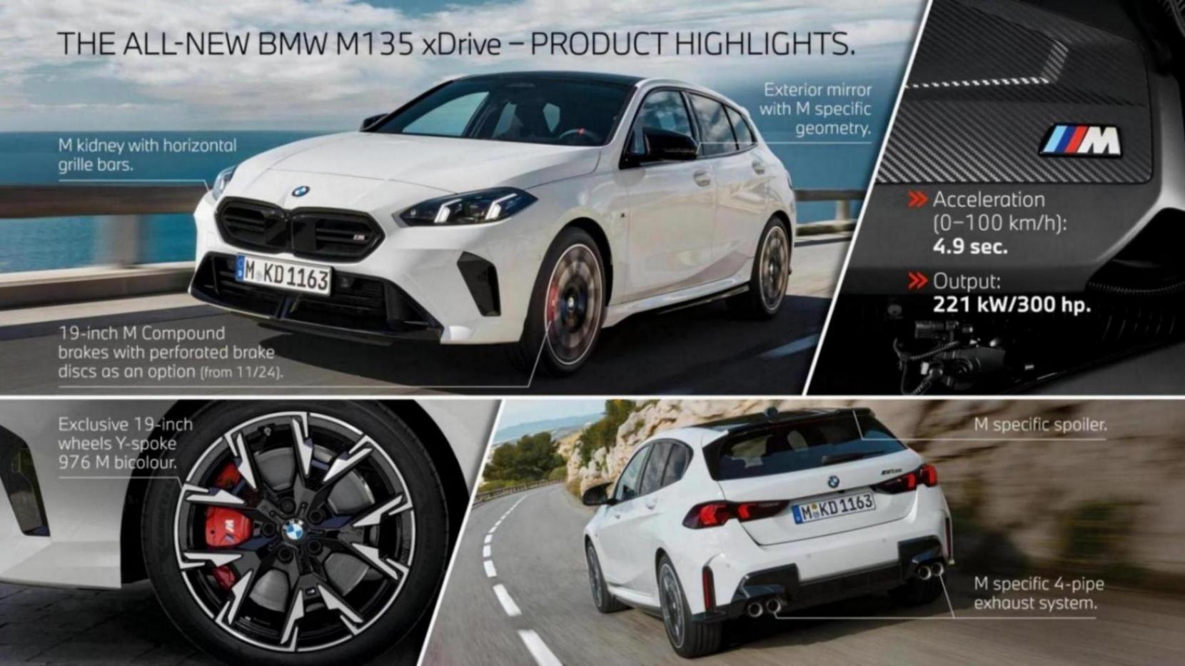 除此之外,一同發布的還有全新寶馬M135 xDrive。新車在外觀上融入了M專屬的運動套件,包括大尺寸熏黑的進氣格柵、牛角后視鏡以及19英寸輪轂和紅色的M高性能運動卡鉗。此外,新車尾部上方的擾流板設計配合雙邊四出排氣系統,無一不彰顯其M的屬性。