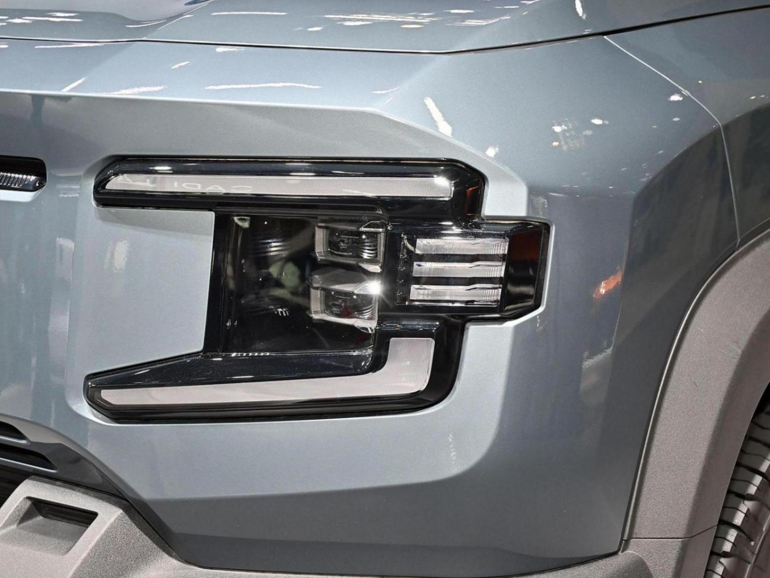 在外觀方面,新車在前臉部分采用了全新的設計理念,封死車鼻加入了上方窄條狀格柵引出了C字形的大燈組,下方則有著多層次的前保險杠部分貫穿式裝飾,配合額外的銀色護板,較大的接近角,顯示出硬派的姿態。車身側面,新車則有些像加大號的哈弗大狗,整體方正的車廂,同時車頂和窗線有所收攏,引出了獨特的D柱造型,突出的輪拱,沒有傳統的硬派越野車那么夸張,更加接近于輕越野車的視覺效果,離地間隙也是如此,其實顯露了該車的身份。