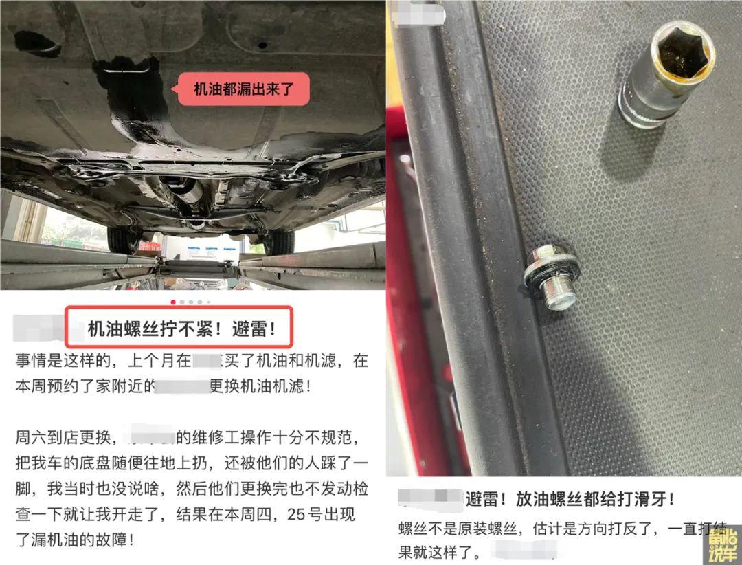 有些店放油螺絲都沒擰緊,車子就給你了,甚至還有一些店直接給螺絲擰到滑絲的,或者說螺絲拆了沒裝回去的。