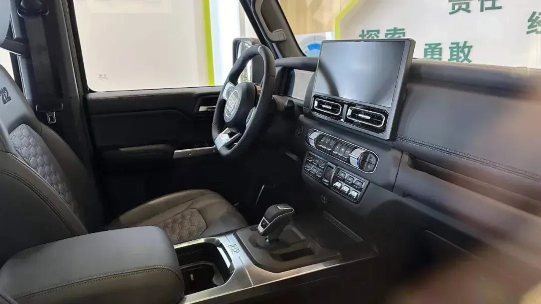 在動力和底盤方面,全新一代212迎來了大幅更新。首先,新車搭載了2.0T汽油發動機,最大功率252馬力,相比老款211馬力的2.4T汽油機在性能和油耗方面都有進步。同時,新車的變速箱也從上代的6速手動升級成了8AT,日常使用更舒適便利。在底盤部分,212并沒有改變它的傳統優勢,依舊為越野能力出色的非承載式車身,且擁有分時四驅,同時前后懸架也都采用了越野能力拉滿的整體橋形式,最大程度保證越野時單側車輪能夠與路面接觸。另外,它還擁有40°的接近角和36°的離去角,與牧馬人處于同一水準。