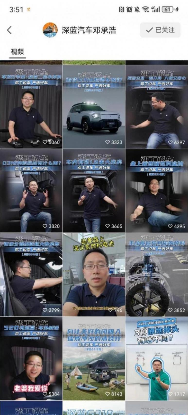 清華碩士畢業(yè)的鄧承浩作為總經(jīng)理,化身“鄧工”在視頻號上開了兩檔節(jié)目,分別是《鄧工講新能源》、《鄧工說車,嚴(yán)選好車》,猛的時(shí)候,一天推兩個(gè)視頻。雖然大家都知道這是廣告,但現(xiàn)在只要開屏,誰不看廣告?
