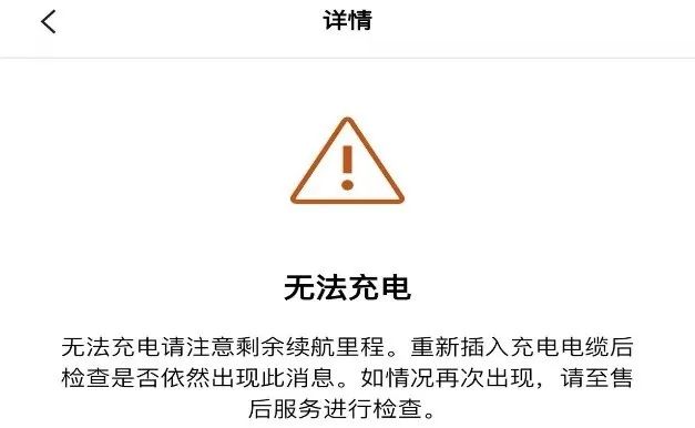 準確來說,本人遇到的“無法充電”故障是車機和App顯示無法充電,但車輛仍然在充電。去年年底,本人常去的星星充電進行場站改造,由原來的120kW升級到480kW。改造完成后,插槍充電顯示正常,鎖車離開后App顯示無法充電,但充電進度條仍顯示充電中,且充電無異常。充電完成后,中控臺會顯示無法充電,儀表盤出現提示。不過在車機重啟后一切正常,不再提示。