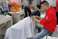循著紅燈籠的引導(dǎo),我來到了一家位于繁華商業(yè)街的理發(fā)店。門前掛著“迎春送福,大吉大利”的對聯(lián),春聯(lián)的紅色印刷讓人感到濃濃的喜慶氛圍。推開門,一陣清香撲面而來,似乎是新裝修的味道。店內(nèi)頓時熱鬧非凡,讓人感受到了春節(jié)的氣息。