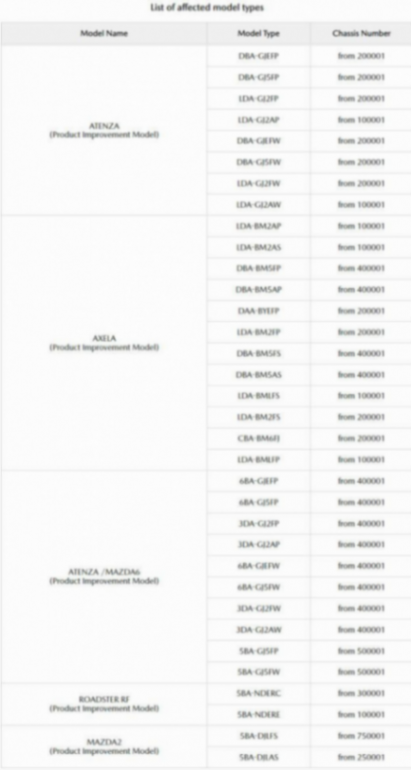 根據(jù)報告,涉及測試造假與違規(guī)行為的是日本當?shù)厥袌鲣N售的Mazda 2、Mazda 3(當?shù)胤Q為Axela)、Mazda 6(當?shù)胤Q為Atenza)和MX-5(當?shù)胤Q為Miata),這些車款全在日本本土生產(chǎn),并只在當?shù)劁N售,目前已鑒定涉案的車款產(chǎn)量高達150,878輛,當中有149,313輛已經(jīng)售出。