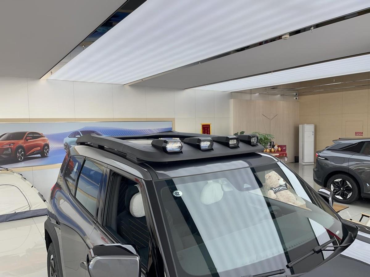 在車頂?shù)奈恢茫@臺(tái)車也是自帶原廠的行李架以及前探照燈。據(jù)悉在停車的情況下,車頂?shù)男欣罴芸梢灾?00kg的重物,也就是說(shuō)日后我們?cè)谲図斂梢约友b車頂?shù)膸づ瘢@一點(diǎn)對(duì)于那些喜愛(ài)自駕或者露營(yíng)的朋友非常友好。