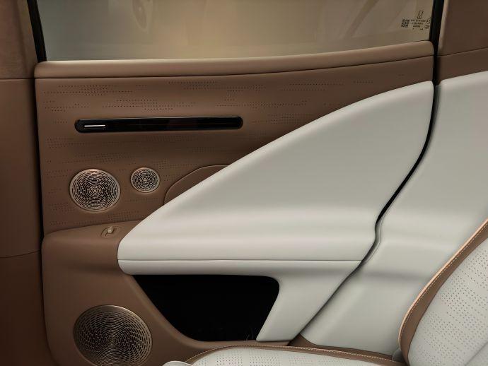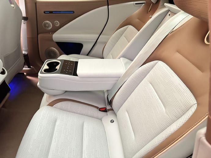 后排配置部分,阿維塔07采用了一個超大的中央扶手,還可以通過后排的屏幕調節座椅靠背角度、老板鍵、遮陽簾等功能。可以看出配置相當豐富。音響配置采用了英國之寶。