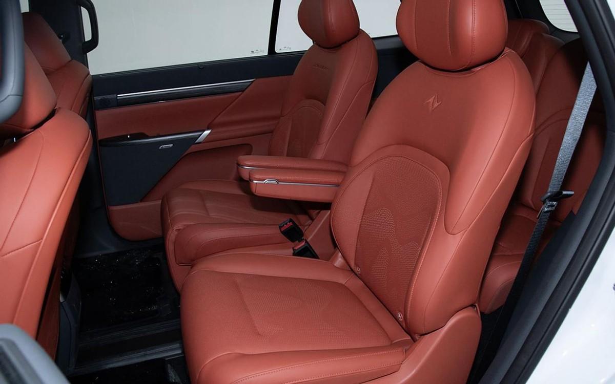 與此同時,eπ008的第二排還提供電動座椅,獨立扶手、小桌板、車載冰箱等配置,況且它的車載冰箱還可以前后移動,也算是照顧到了前后排乘員的使用感受。加上座椅像柔軟的大沙發,所以看得出來,eπ008是想要將家用的舒適性和娛樂性給做到極致。