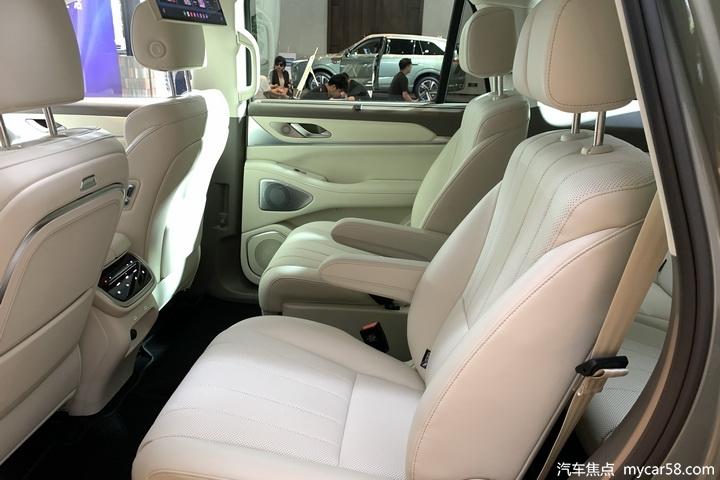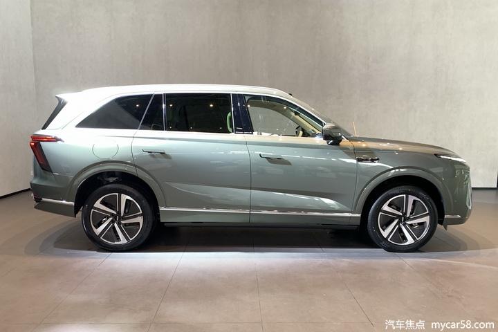 車身側面造型簡約流暢,車窗周圍有一圈鍍鉻裝飾條進行點綴,寬大的車身與隱藏式門把手并沒有出現違和感,呈現出一種低調的奢華感。尺寸方面,新車長寬高分別為5156/1980/1805mm,軸距為3050mm,定位中大型SUV。