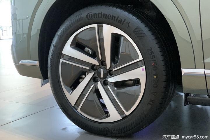 新車配備新樣式的低風阻20寸輪轂,搭配255/50 R20的馬牌輪胎,底盤方面依然采用前麥弗遜+后五連桿式獨立懸架組合。