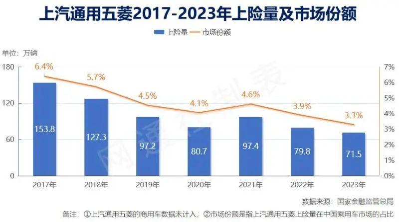 整體來看,在乘用車市場,SGMW的份額已經從2017年的6.4%下跌至去年的3.3%。