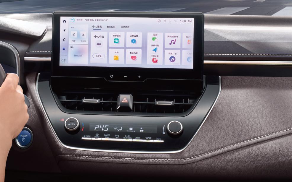 內(nèi)飾方面,新車內(nèi)飾裝修風(fēng)格延續(xù)了老款設(shè)計(jì),并主要對(duì)配置進(jìn)行升級(jí)。其中,1.8L第五代智能電混雙擎精英版內(nèi)飾采用大量軟性皮質(zhì)包覆,包括座椅、中央扶手,以及方向盤等處質(zhì)感得到進(jìn)一步提升。此外,新車搭載了12.3英寸全液晶儀表盤+10.25英寸中控屏幕,并支持多媒體智能導(dǎo)航系統(tǒng)、CarPlay、CarLife、HiCar三大平臺(tái),可與智能手機(jī)互聯(lián)。支持車載微信、語(yǔ)音AI交互、OTA無(wú)線升級(jí)、高精地圖等等豐富配置。