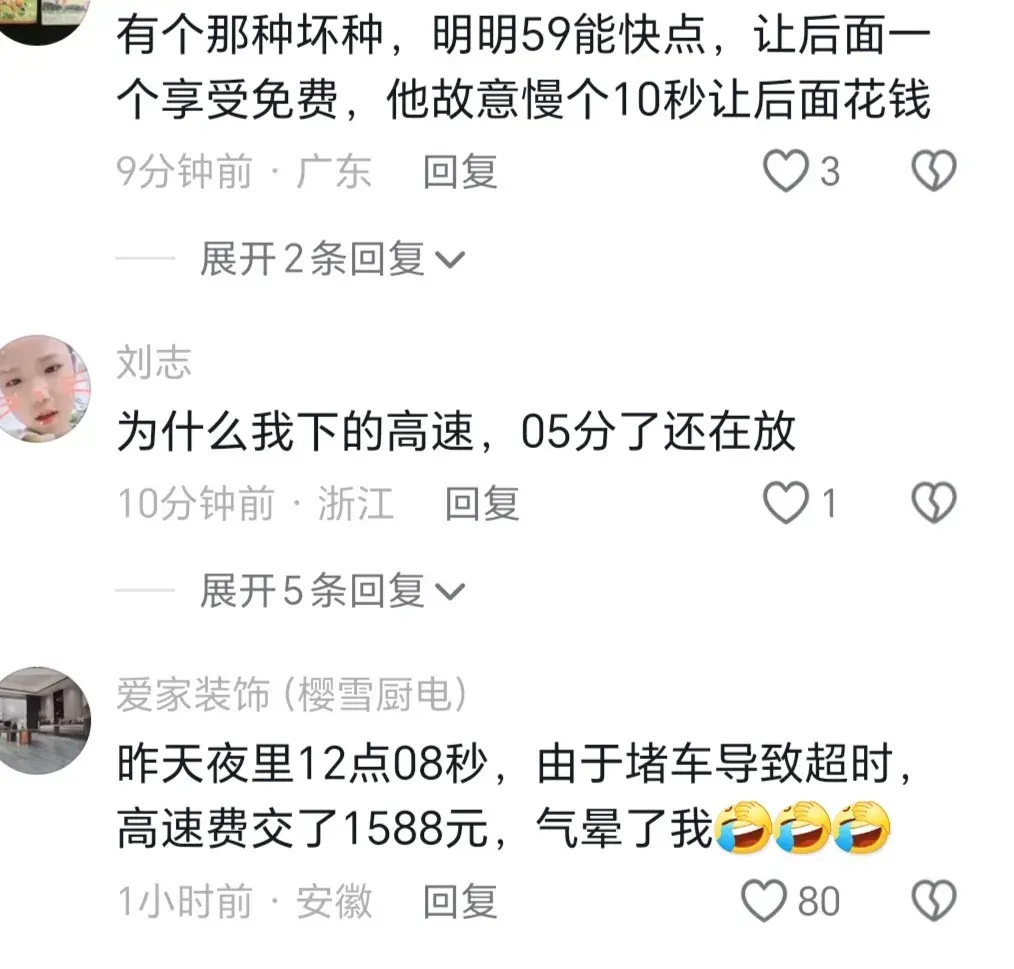 也有人沒能趕上最后一分鐘下高速,沒享受到免費的福利,只能乖乖的繳納全部的費用。