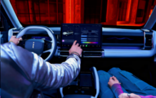 內飾方面,iCAR 03主打的也是科技感,內飾布局以對稱為主要設計風格,中控臺采用了不少平直線條,讓整體造型硬朗了不少;實體按鍵和旋鈕基本上被省略掉,整個中控臺顯得十分簡潔。