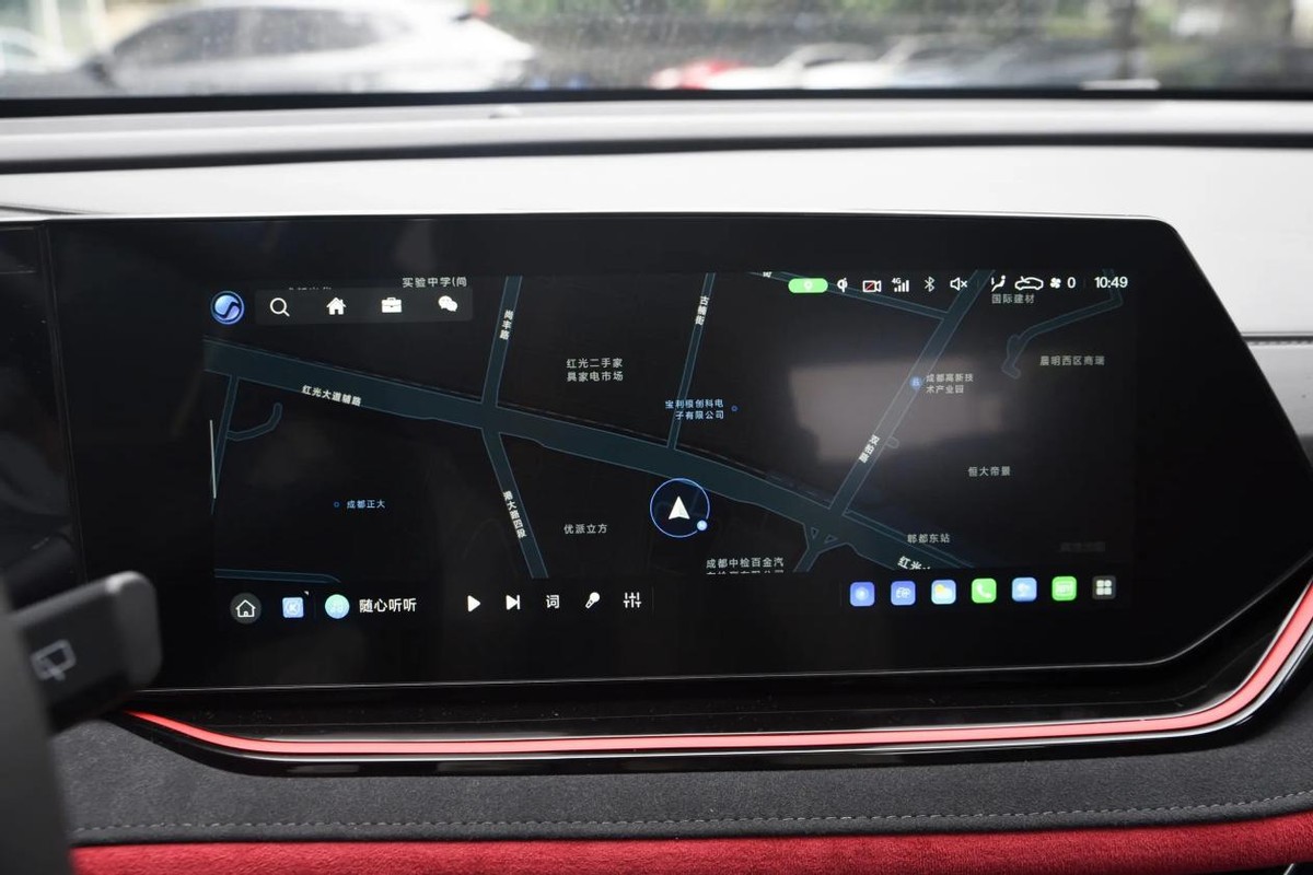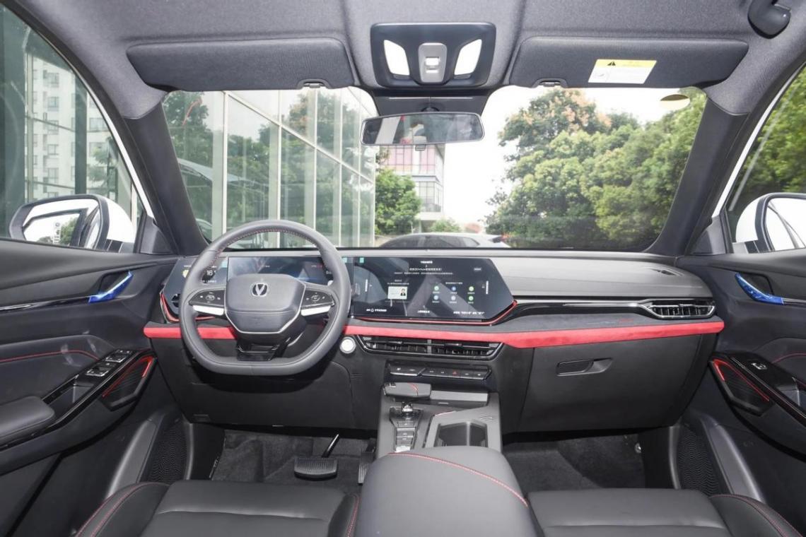 座艙及配置層面,長安X5 PLUS配備了30英寸的三聯屏,中控臺上方和車門板等區域還帶有紅色的元素,加上拼色配色的一體式運動座椅后,很好地提升了車內的駕控氛圍。大連屏可以顯示的信息比較豐富,并且左右兩側都屏幕都帶有傾斜角設計,可以更好地掌握信息。