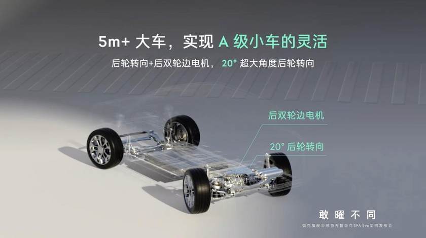 動(dòng)力上,新車基于SPA Evo架構(gòu)打造,搭載插電式混合動(dòng)力系統(tǒng),提供3種動(dòng)力方案可選,包括1.5T發(fā)動(dòng)機(jī)+雙電機(jī)、2.0T發(fā)動(dòng)機(jī)+雙電機(jī)和2.0T+三電機(jī)(后橋雙電機(jī)配置),系統(tǒng)總功率最高可達(dá)630kW。而且新車還配備領(lǐng)克Super AI數(shù)字底盤,搭載后輪轉(zhuǎn)向系統(tǒng),可以實(shí)現(xiàn)原地掉頭、蟹行模式等;更有CDC懸架+雙腔空氣彈簧。