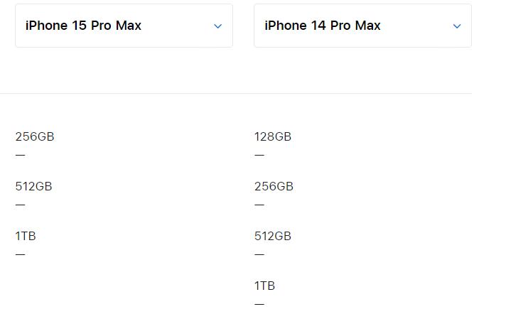 值得一提的是,2023年推出的超大杯機型iPhone15ProMax,是256GB儲存起步,與此同時,價格卻仍然是9999元起,和iPhone14ProMax的256GB保持一致。起步儲存漲了,價格也上來了。