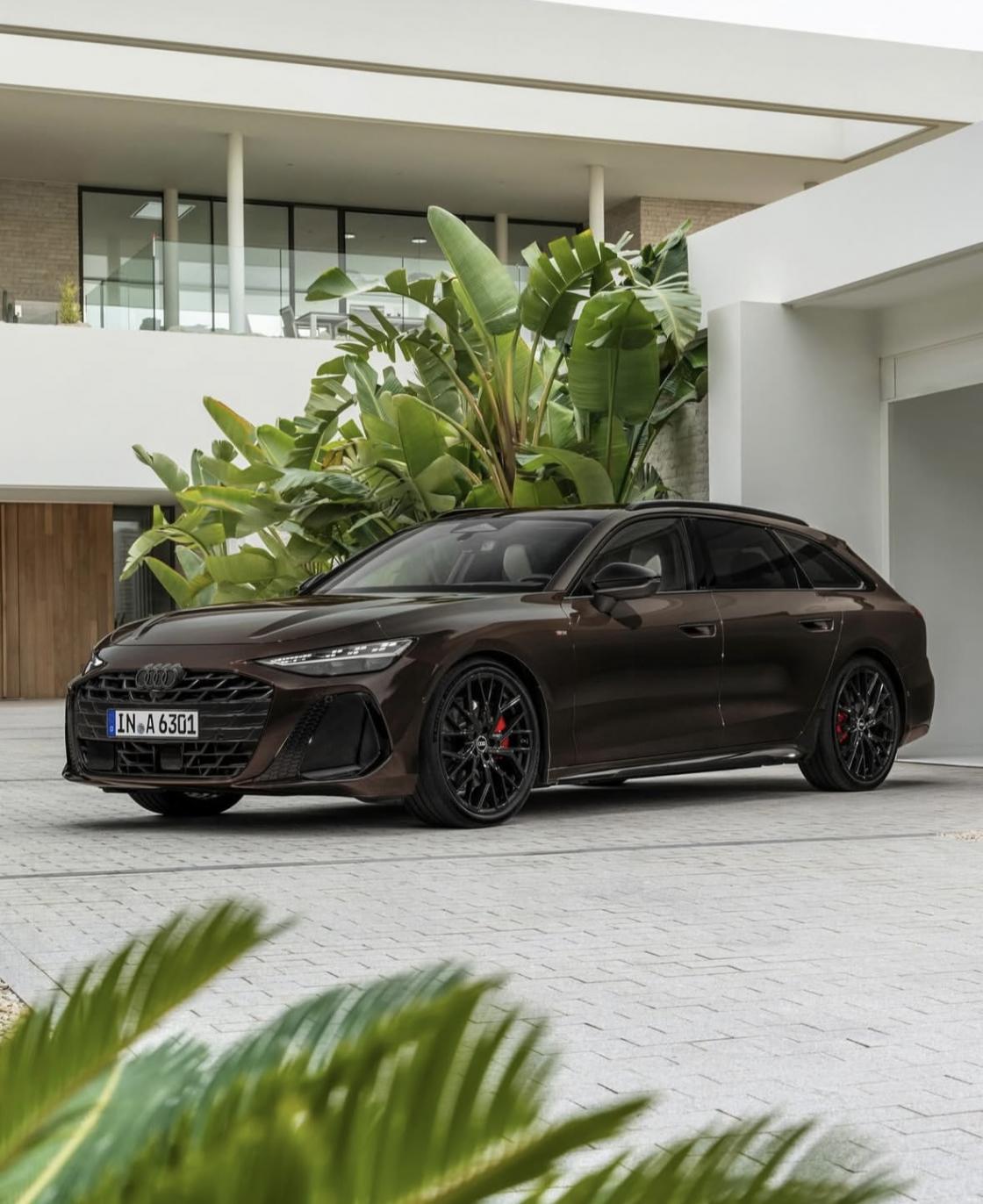 新車保留了奧迪標志性的六邊形中網,但通過黑化處理和可編程日行燈實現個性化表達,矩陣式光源支持動態圖案切換,兩側導流槽兼具空氣動力學與視覺沖擊力。側面修長線條搭配22英寸熏黑輪轂,D柱前傾角度增加至15°,風阻系數降至0.25,成為歷代最“滑”的A6旅行車。尾部貫穿式尾燈采用雙層鱗片光源,與熏黑擴散器共同演繹“西裝暴徒”美學。