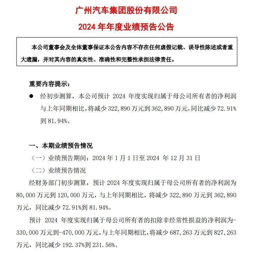 面對汽車行業價格戰愈演愈烈、競爭格局快速變化的挑戰,廣汽集團2024年的汽車銷量遭遇了下滑,全年累計銷量200.3萬輛,同比下降約20%。為應對激烈的市場競爭,廣汽集團及其投資企業增加了約180億元的銷售補貼等商務政策投入,這一舉措導致母公司凈利潤同比下降。