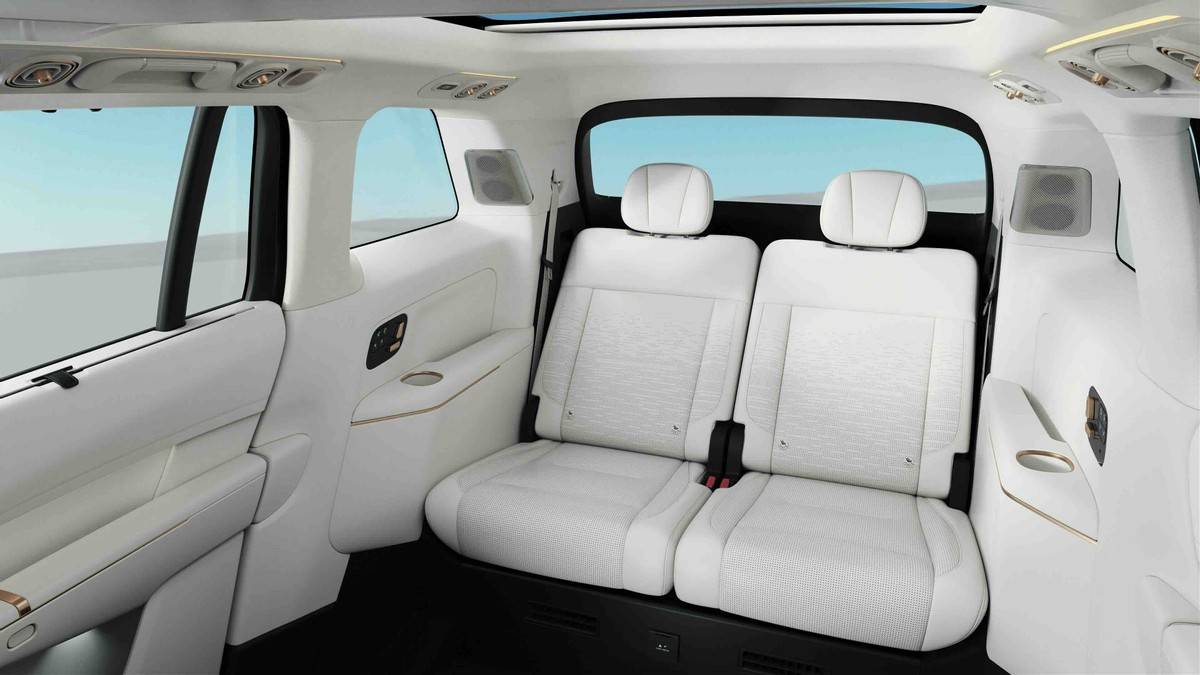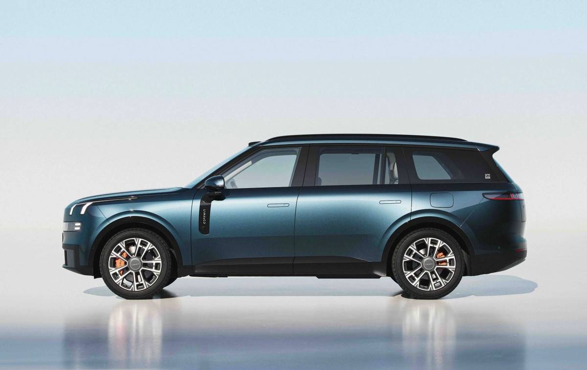 車身側面部分,有點路虎車型的感覺,配隱藏式門把手。多幅輪轂有著很強的視覺沖擊效果。尺寸部分,車長4900mm,軸距達2880mm,長軸距有效保證了駕乘空間表現。