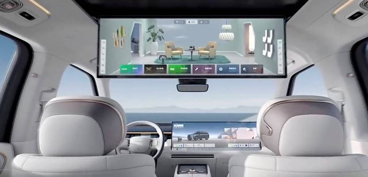 內飾方面,這塊30英寸6K中控屏跟副駕組成的一體屏很難不讓人想起理想SUV,另外還搭12.66英寸液晶儀表,后排也安排了車頂屏。