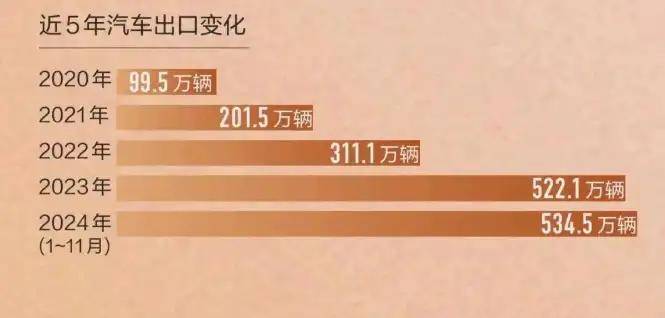 不平凡的2024年已然翻篇,國內(nèi)汽車行業(yè)再度迎來了年終交卷時(shí)刻。根據(jù)中國海關(guān)總署于1月13日所公布的數(shù)據(jù)來看,2024年我國汽車出口量達(dá)到641萬臺,同比增長23%,這是自2023年我國以522.1萬臺汽車出口量的數(shù)據(jù)首次超越日本,成為全國汽車出口第一之后的又一次勝利。盡管當(dāng)前諸多競爭對手尚未公布全年數(shù)據(jù),但是從24年前11個月的數(shù)據(jù)來看,我國已將競爭對手們遠(yuǎn)遠(yuǎn)甩在身后,出口優(yōu)勢持續(xù)擴(kuò)大,蟬聯(lián)出口第一基本上是板上釘釘。除此之外,在24年中,我國的汽車出口額達(dá)到了1,174億美元,所占中國出口總額也是從去年的1.7%提升到了3.3%。