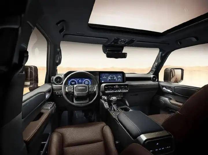 內飾方面,儀表盤和中控臺的設計都采用了懸浮式的設計,12.3英寸的全液晶儀表盤能夠清晰地顯示車輛的各種信息,而12.3英寸的中控臺觸控屏幕則支持語音控制和手機互聯等功能,讓駕駛者隨時隨地享受智能化的駕駛體驗。此外,采用了大量的軟質材料和皮質包裹,質感非常出色,同時還采用了深色與淺色搭配的方式,營造出一種溫馨的氛圍,整體感覺不那么像硬派越野的樣子。配置方面,配備了三區自動空調、座椅加熱/通風、無線充電、JBL影像以及數字鑰匙等。