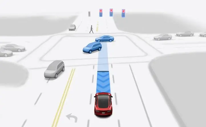 特斯拉現(xiàn)在的可視化功能,是在中央屏幕上,顯示車輛及其周圍環(huán)境,并在自動駕駛或全自動駕駛模式下顯示行駛路線。