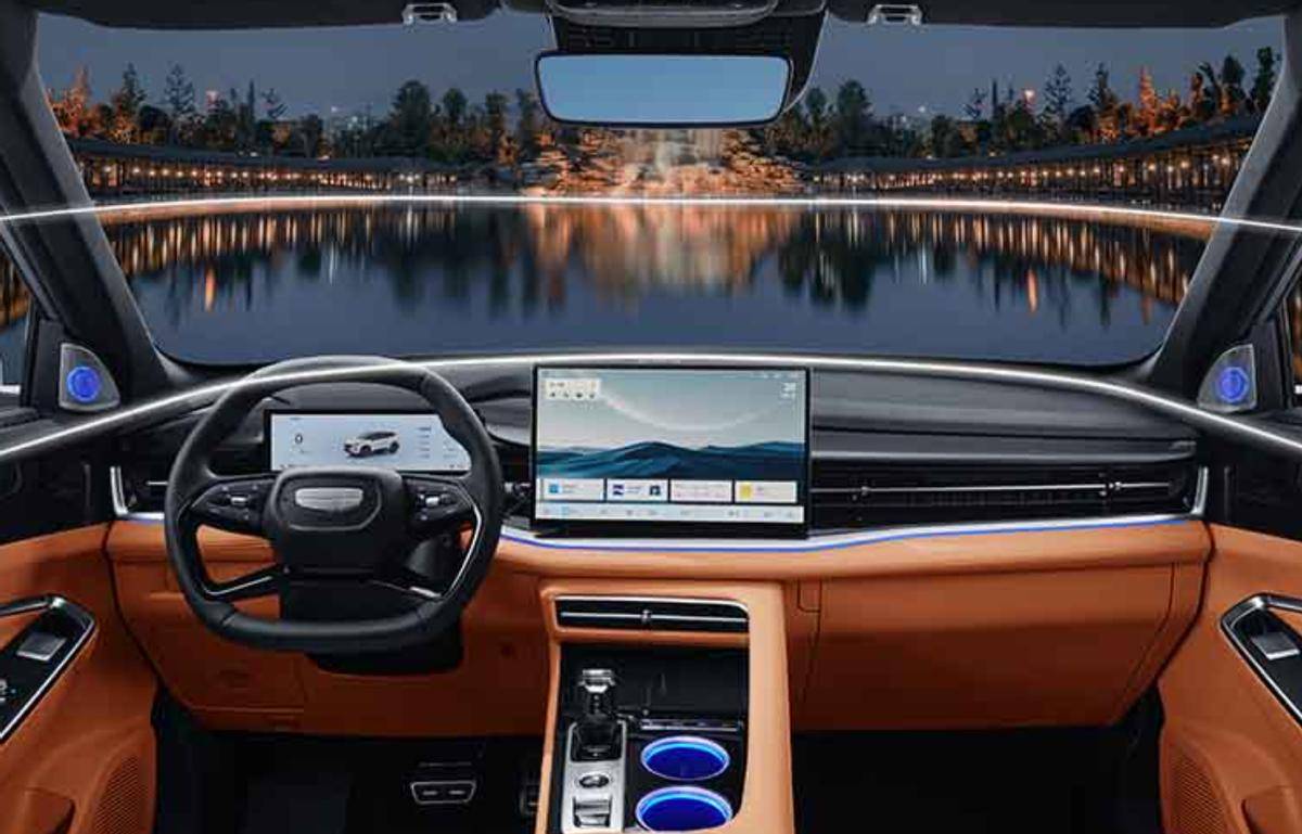外觀營造的是運動氛圍。而在營造內(nèi)飾氛圍上,吉利一直都很有一手,氛圍燈布置得高級,顏色還多。這個位置用的水晶擋把,也是一眼高級。