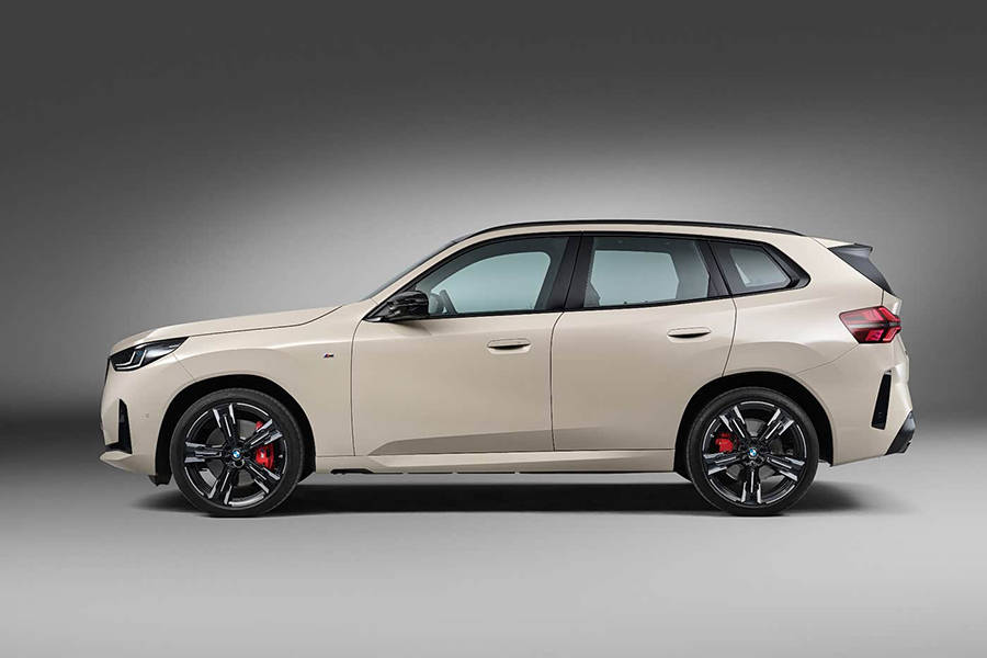 外觀方面,X3 M50采用專(zhuān)屬的M黑化運(yùn)動(dòng)格柵,前臉裝飾件也進(jìn)行了黑化處理,提供7款標(biāo)配車(chē)漆、3款常規(guī)選裝車(chē)漆。車(chē)身尺寸方面,新車(chē)長(zhǎng)寬高分別為4755/1920/1660mm,軸距為2865mm,新車(chē)提供2款輪圈,分別為雙色21英寸1037M型星式輪輻鋁合金輪圈(標(biāo)配)和黑色21英寸1037M型星式輪輻鋁合金輪圈(5000元選配),輪胎規(guī)格為前255/45 R20 105Y XL,后285/40 R20 108Y XL。車(chē)輛尾部,后包圍也進(jìn)行了黑化處理,加入了雙邊共兩出排氣。